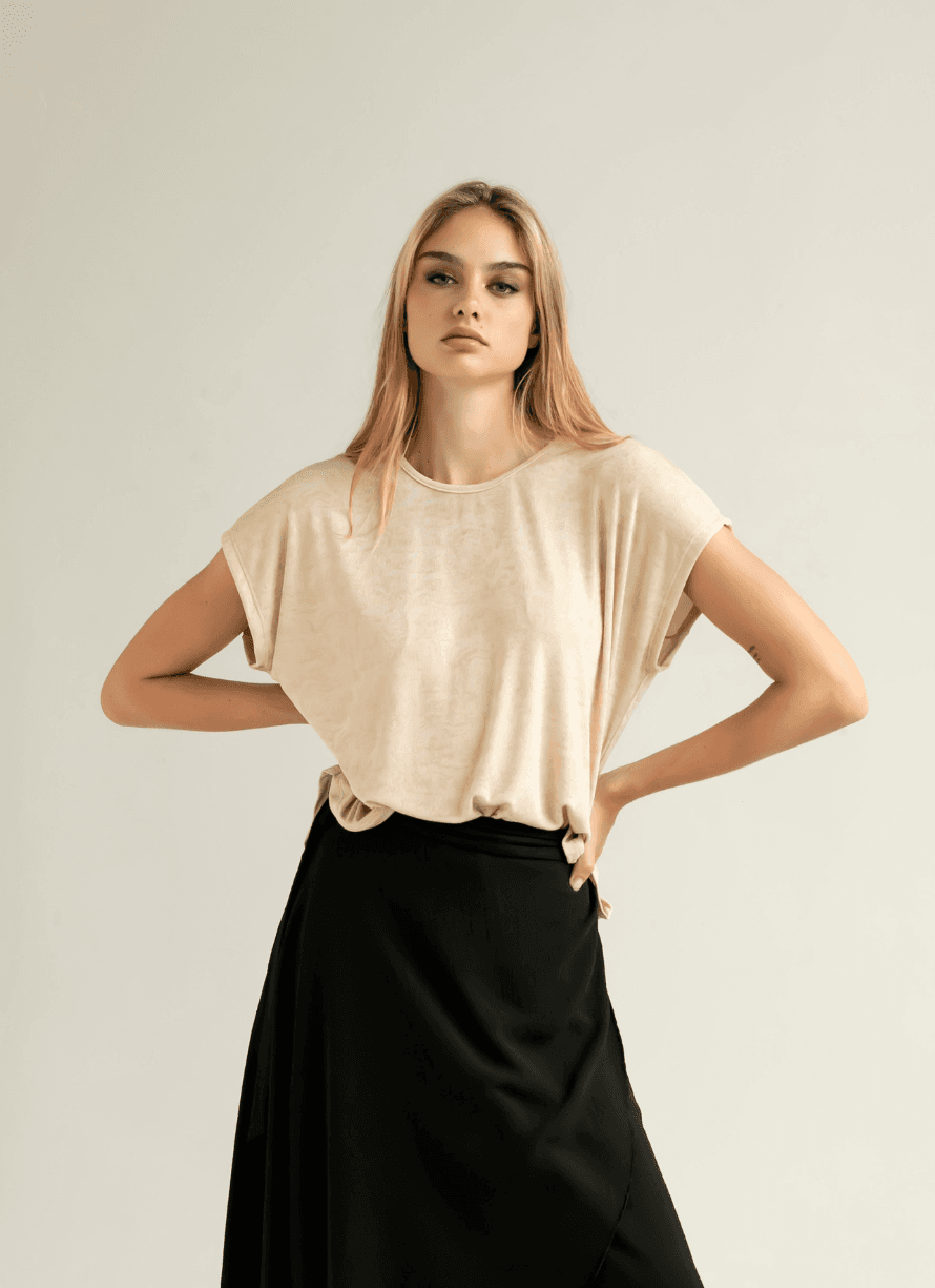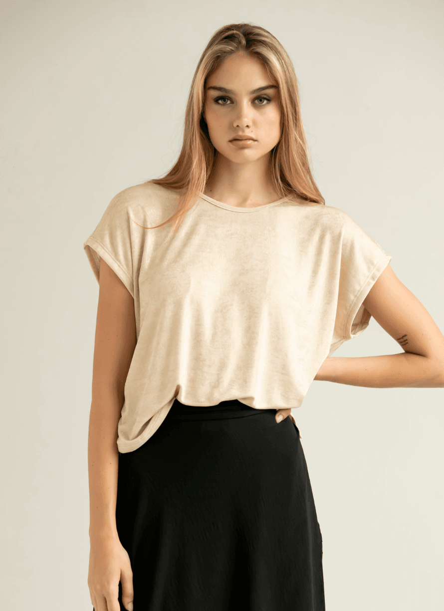 Blusa de manga corta con lurex. Una básica salvadora para darle un touch arreglado pero descontracturado a tus looks. Esa prenda que poder lookear con polleras, jeans, pantalones o un sin fin de opciones.