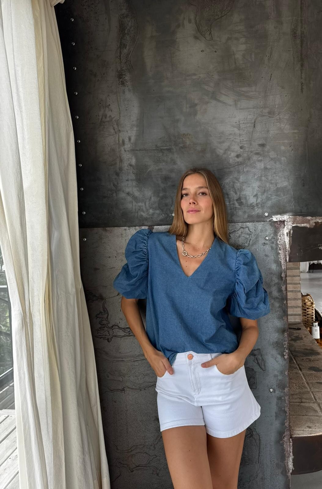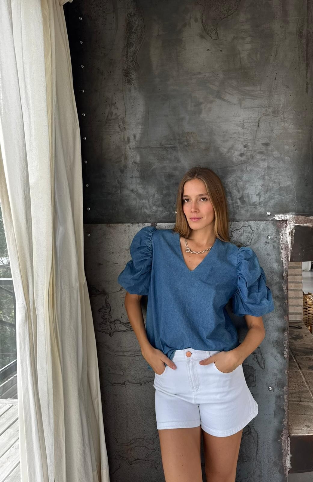 Con mangas protagonistas y un denim fino, es ideal para las tardecitas de verano.