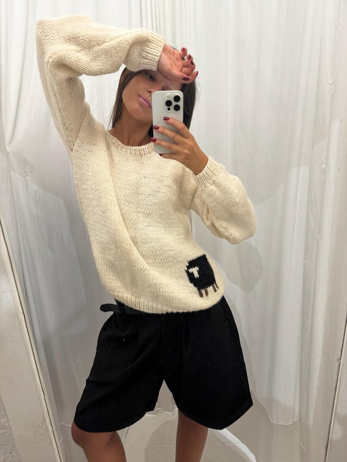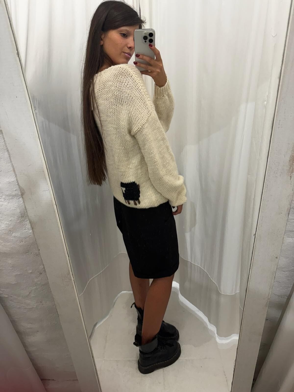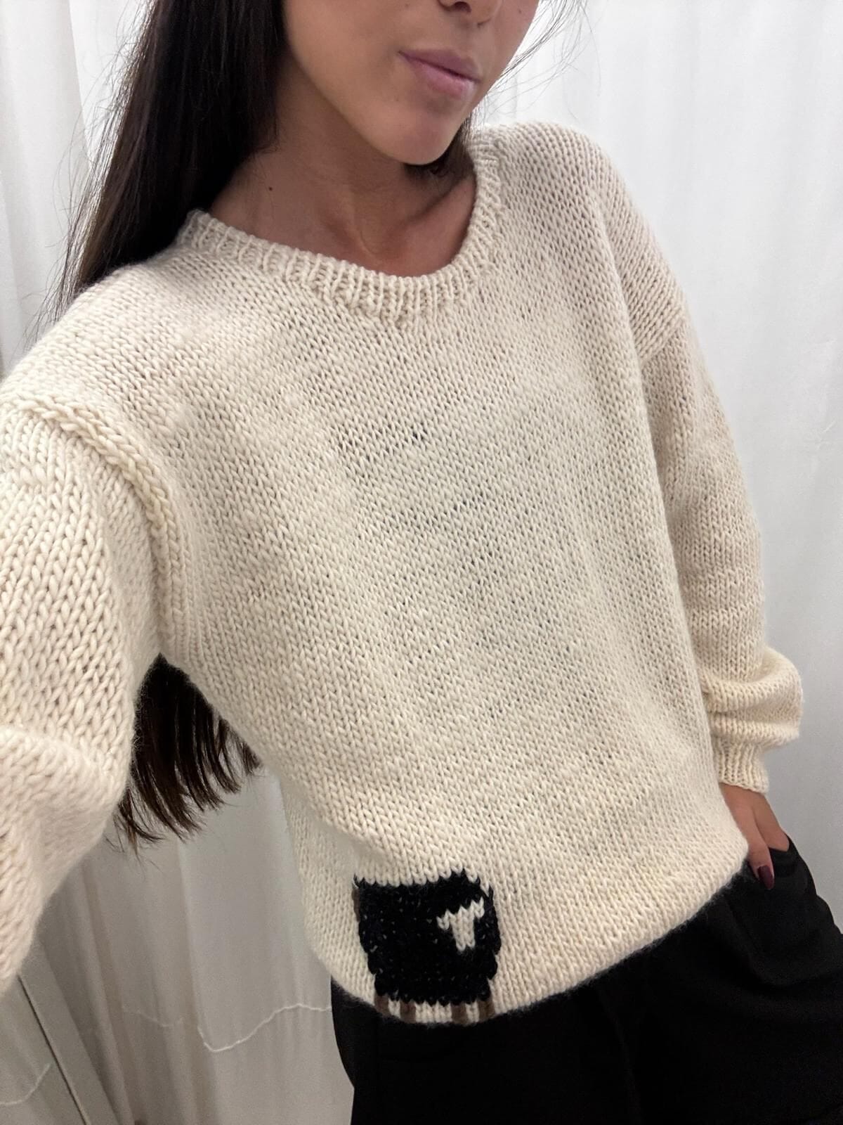 ¡Fans de nuestros tejidos, tenemos algo nuevo para ustedes! Les traemos este buzo tejido, pero con un toque especial: ¡es temático y presenta a uno de los animales más característicos de nuestro Uruguay, la oveja! Un animal noble, al igual que el tejido de este buzo, 100% lana merino. No necesitamos decir mucho más,