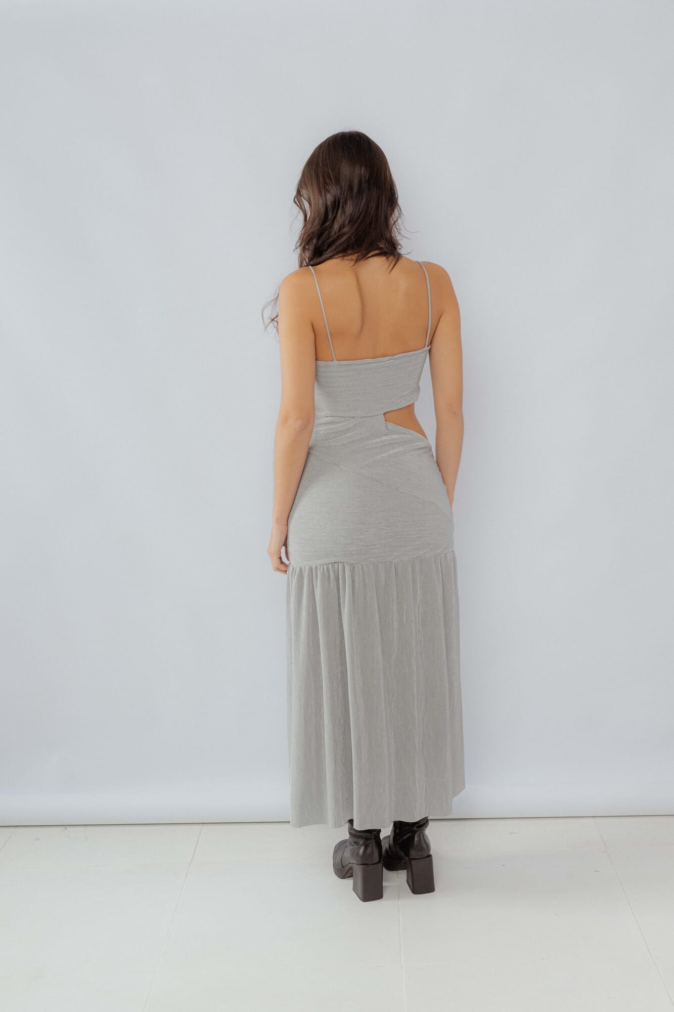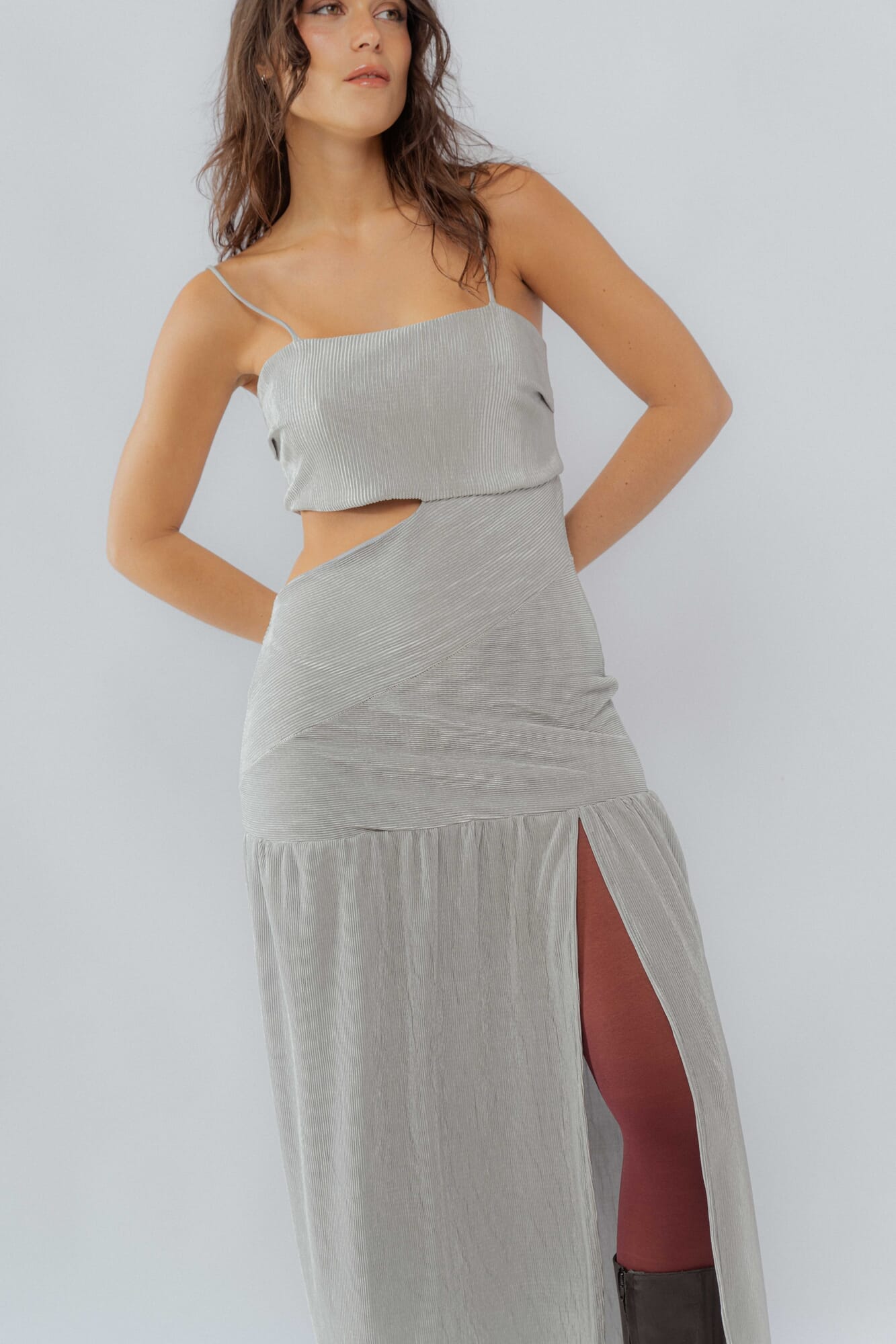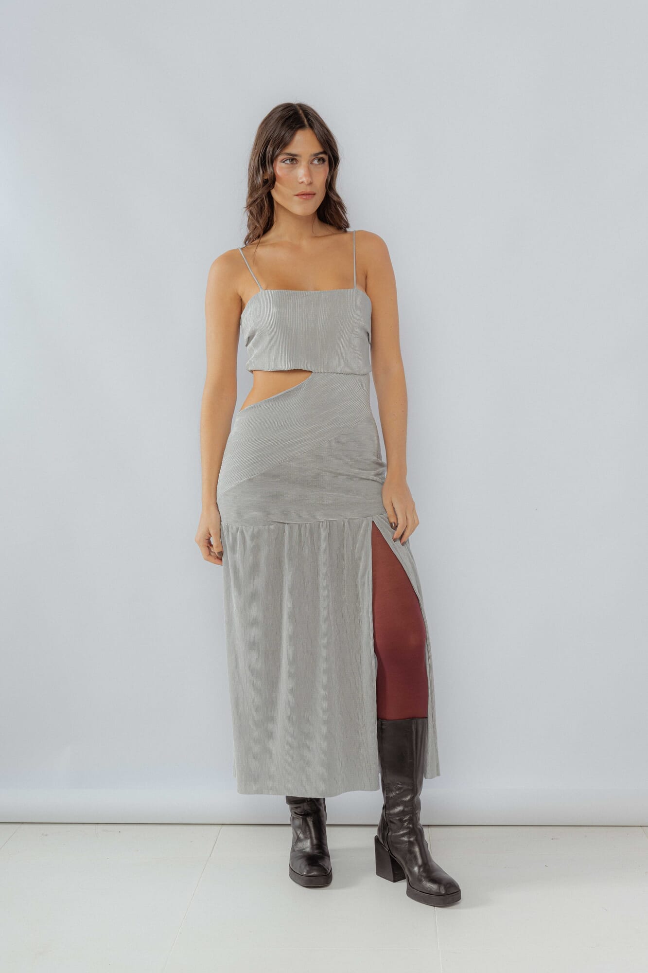 Vestido largo con cortes asimétricos y con frunces: ideal para casamientos, graduaciones y fiestas en general.Ésta prenda fue diseñada por Isa Berruti en Barcelona y confeccionada en Uruguay para Nsld