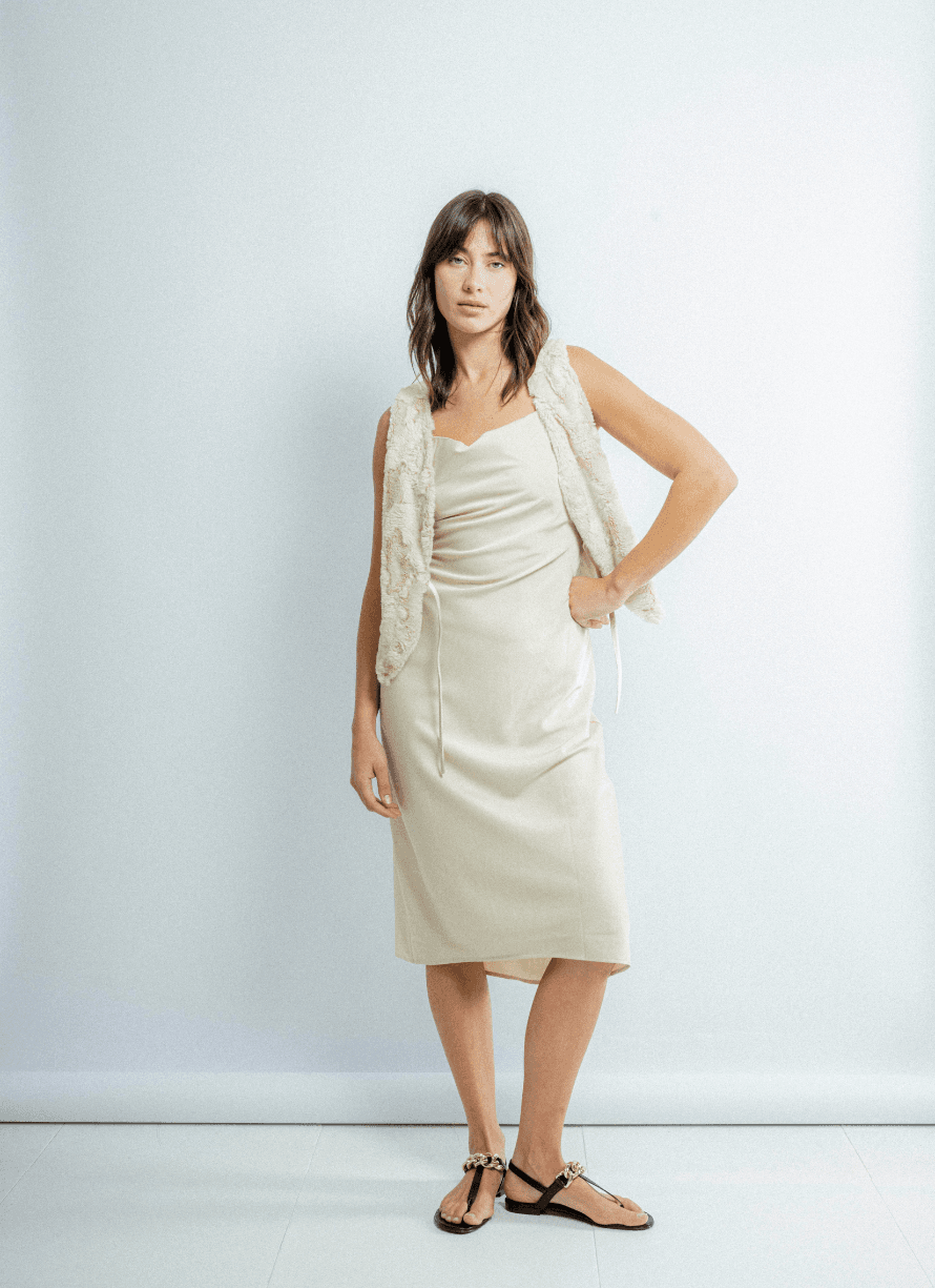 Vestido midi por debajo de la rodilla, escote sutil y tirantes finos. Un básico que todas tenemos que tener en el closet. Ideal para combinarlo con camperas de jean y zapatillas para un look más casual o tacos y blazer para algo más formal. Un verdadero todo terreno
